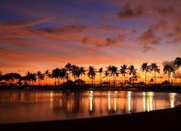 sunset evening sky colorful palms nature