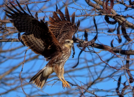 Gavilàn alzando vuelo, como si fuese empujado hacia adelante por los rayos de luz